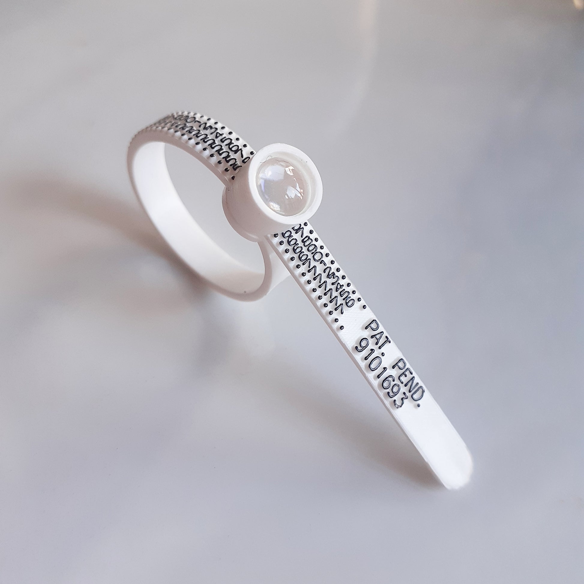 Il suffit de lui donner une forme d'anneau et de le passer à son doigt comme on ferait avec une bague classique. Il est conseillé de le retirer et de le remettre pour s'assurer que l'anneau peut ressortir. Il doit comme une bague classique n'être ni trop serré et trop lâche.