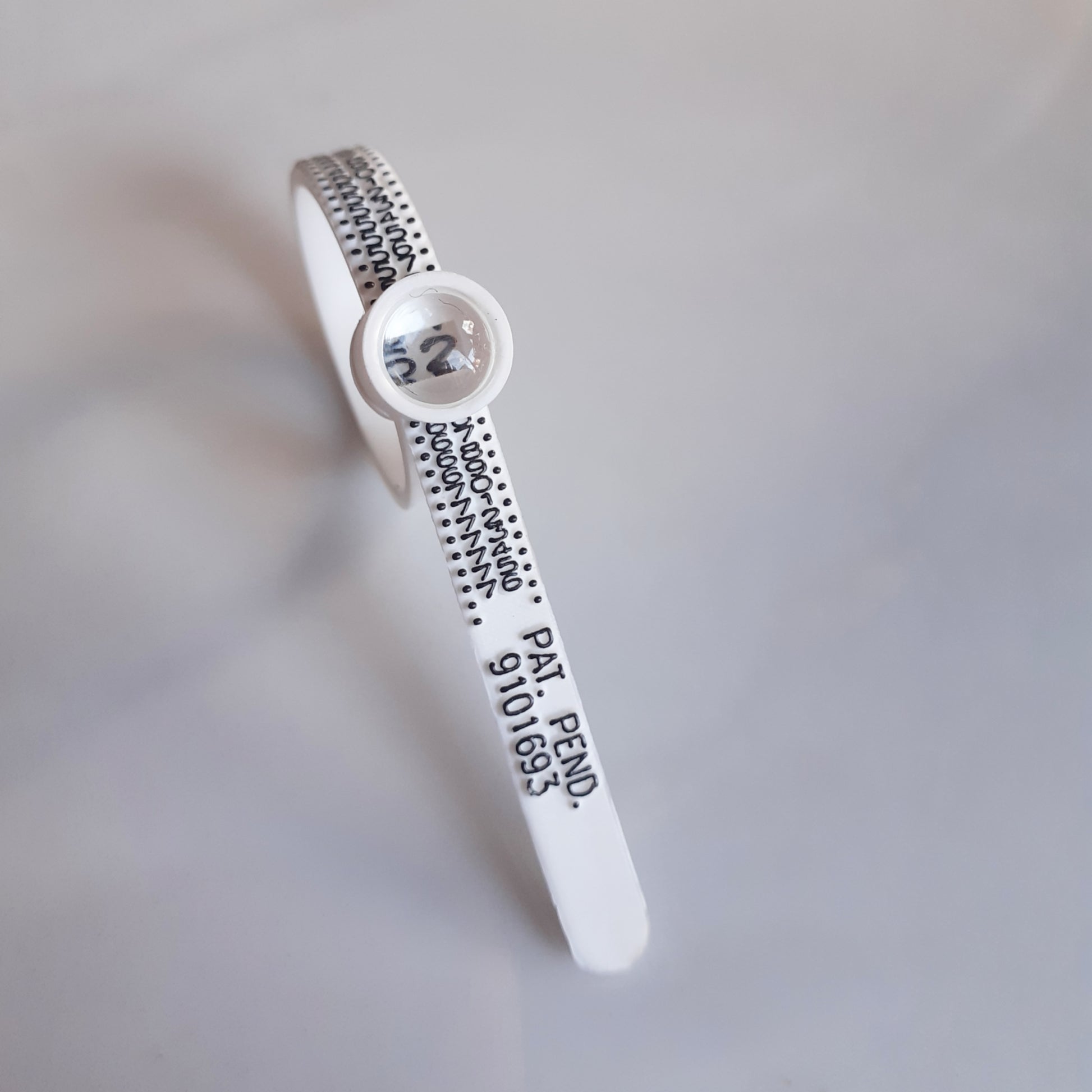 Baguier en plastique souple permettant de mesurer la taille de son doigt. Très facile d'utilisation il est multiréglable et peut être utilisé plusieurs fois.